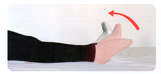 2、尝试完全伸面膝关节,并使得滕关节下方接触床。